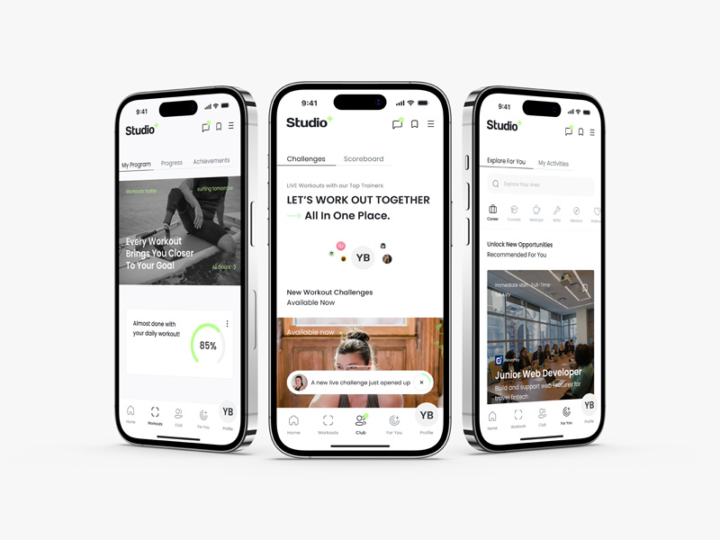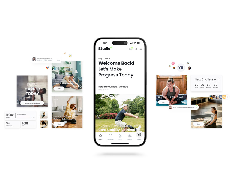 סטודיו+ היא פלטפורמה דיגיטלית לתמיכה בשיקום ביתי עבור צעירים קטועי גפיים מהמלחמה, המסייעת לשמור על שגרת תרגול עקבית באופן עצמאי מהבית, תוך התאמה לתחומי עניין ולמטרות אישיות.
